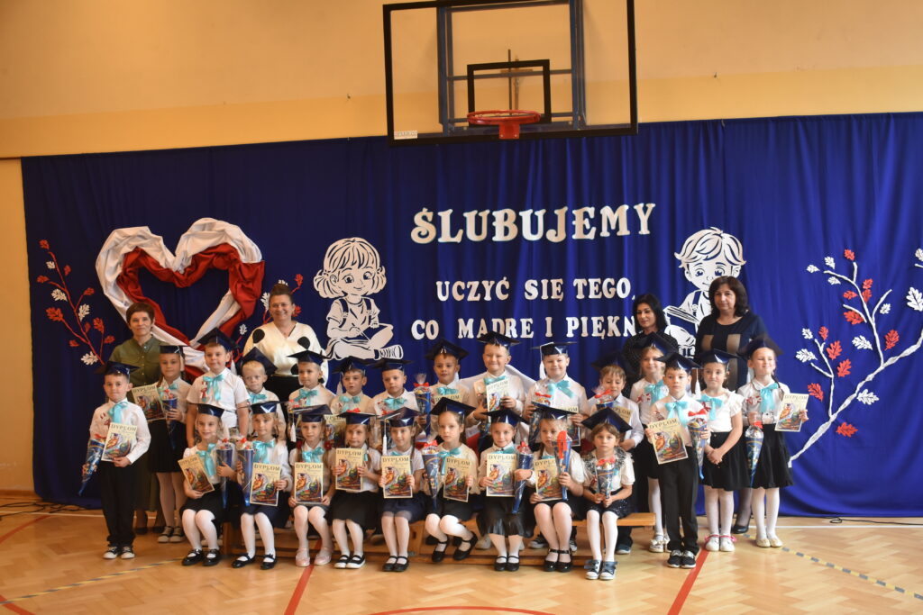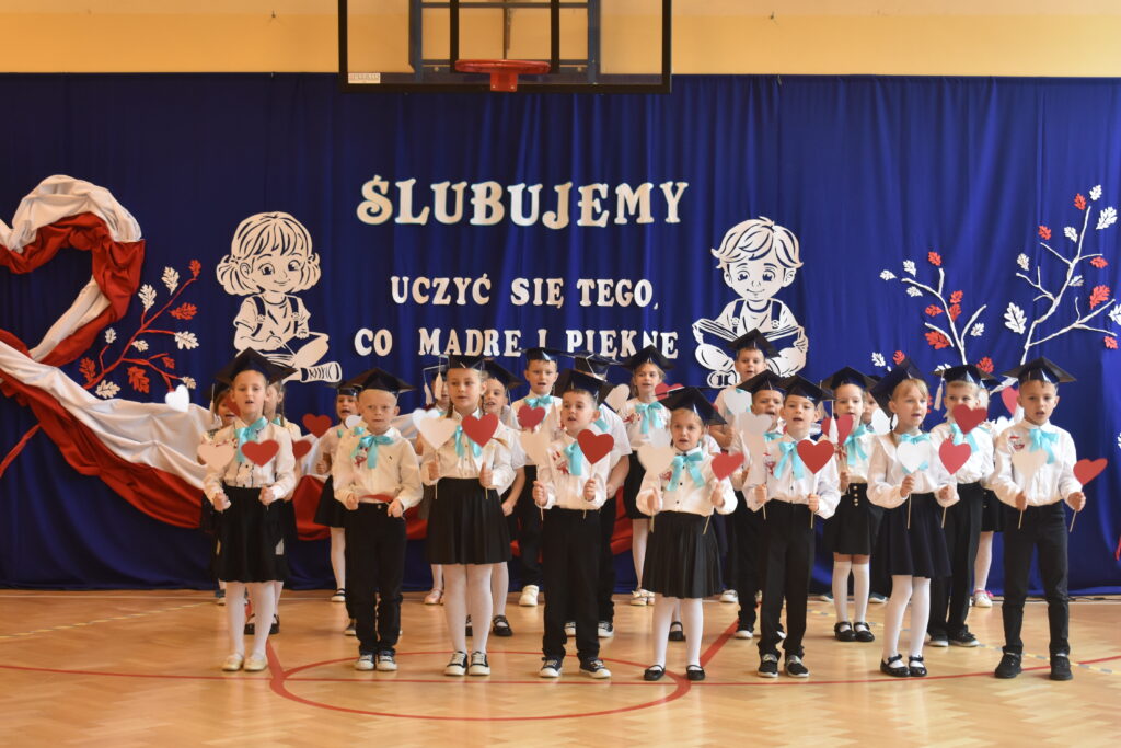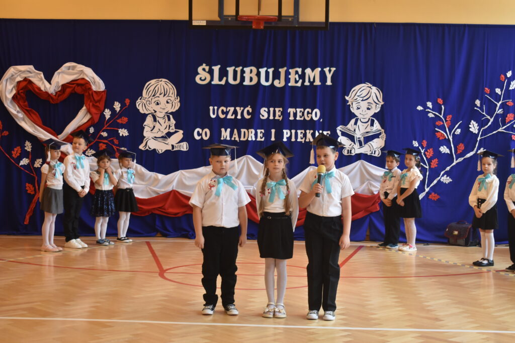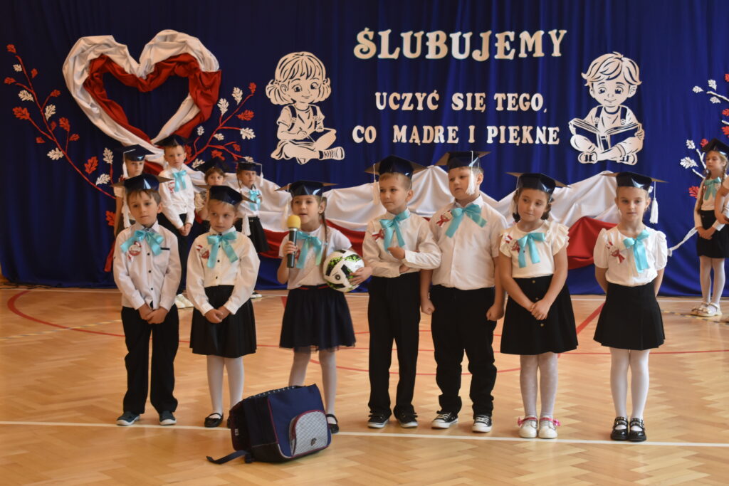 „Ślubuję być dobrym uczniem” – te słowa wypowiedzieli nasi najmłodsi uczniowie podczas uroczystości Ślubowania i Pasowania na Ucznia 17 października 2025 r w naszej szkole. To emocjonujące wydarzenie jest piękną, szkolną tradycją kultywowaną od wielu lat. Pierwszoklasiści przygotowali się do tego dnia wytrwale i starannie pod kierunkiem swojej wychowawczyni pani Ewy Hutman. Pierwszaki w obecności dyrekcji, rodziców, zaproszonych gości i starszych kolegów z klas drugich i trzeciej wykazały się wieloma umiejętnościami i pokazały, że zasługują na miano ucznia naszej szkoły. Zaprezentowali wiedzę o właściwym zachowaniu w szkole i dali się poznać jako młodzi patrioci, kochający swoją Ojczyznę. Po uroczystym przedstawieniu złożyli przysięgę ślubowania po czym Pani Dyrektor Katarzyna Sudoł dokonała pasowania symbolicznym ołówkiem.
